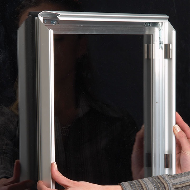 Posterlerin hem içeriden hem de dışarıdan vitrin sunumu için uygundur.