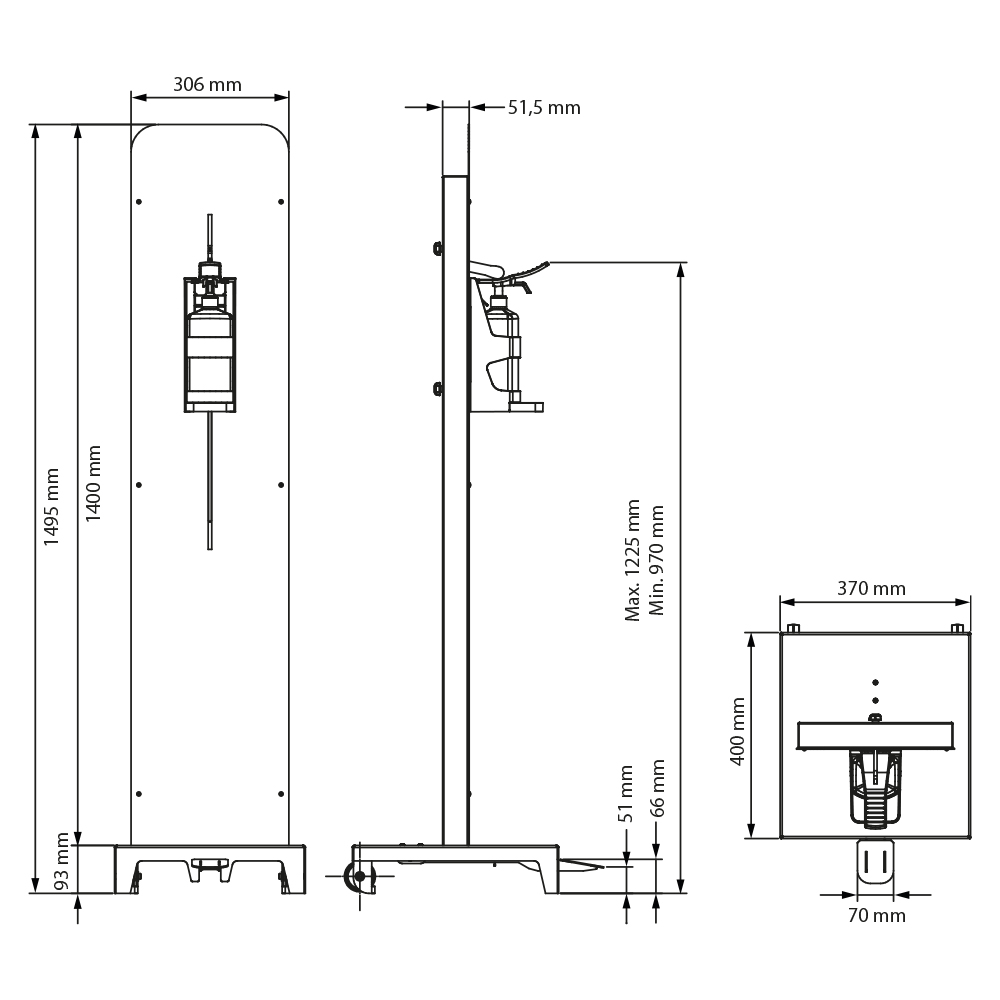 - %100 handsfree kullanım sağlayan ayak pedallı dezenfektan standı
