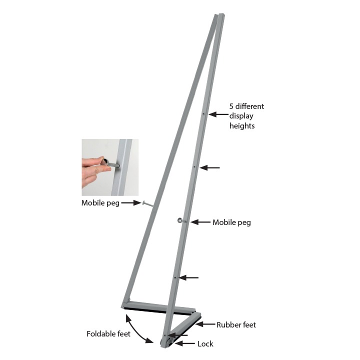 • Ayarlanabilir pimler, B2’den A1’e kadar çeşitli çerçeve boyutlarının sergilenmesine olanak tanır.