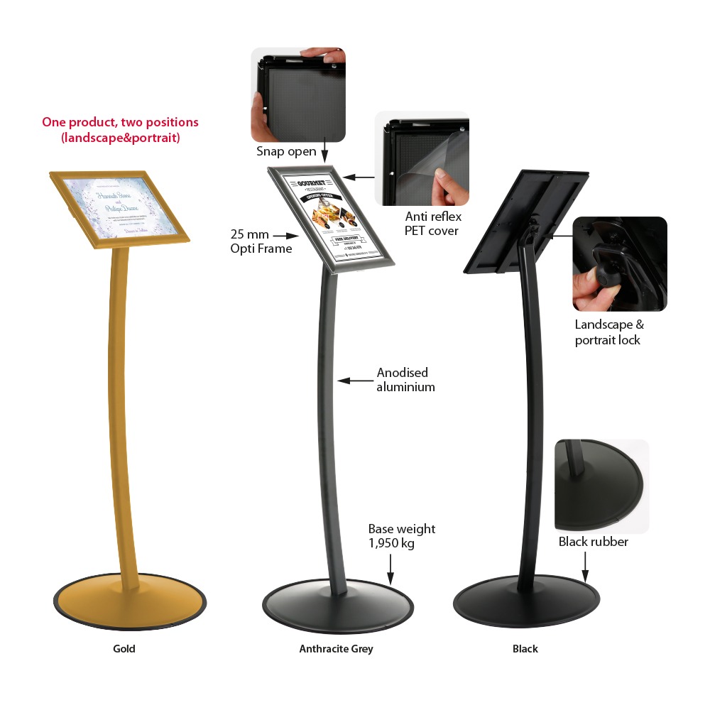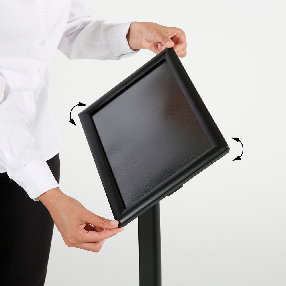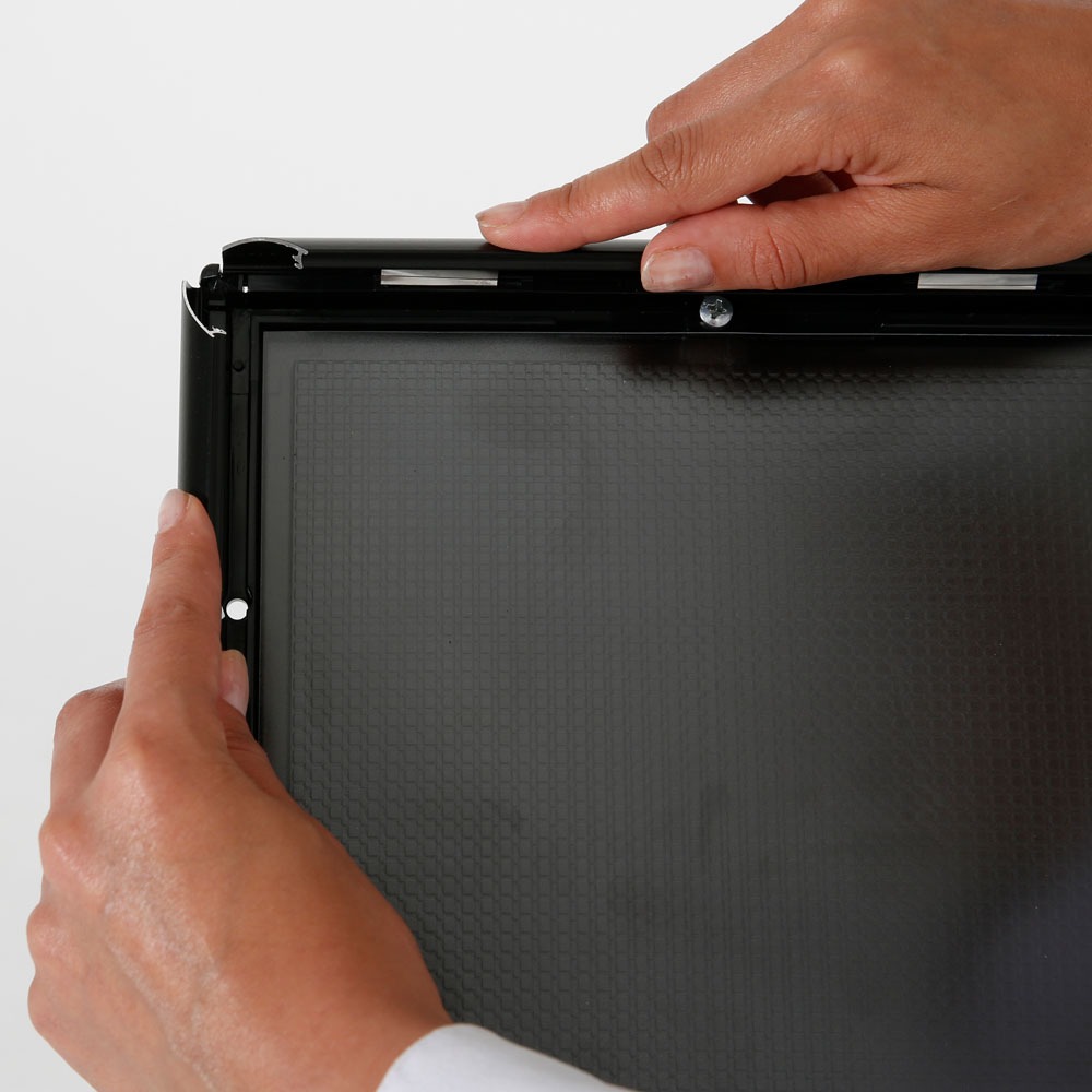 Snap-open sistemli çerçeve kenarları, posterlerin hızlı ve zahmetsiz şekilde değiştirilebilmesine imkân tanır.