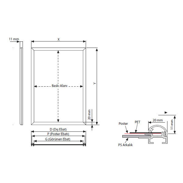 Profile 11 mm harf yüksekliğinde baskı yapılabilir.