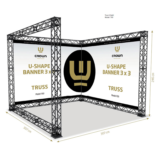 Modüler sistem olarak yaratılan Crown Truss display sistemleri, fuar, tanıtım ve sergi kurulumları için özel olarak hazırlanmıştır.