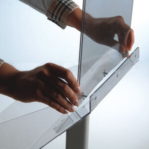 Ürün üzerine monte edilen U kıvrılmış pleksi alınlık görevi görürken içindeki görseli de istediğiniz sıklıkta yenileyebilirsiniz.