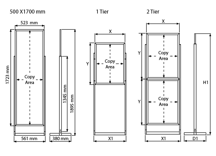 • 6 posteri aynı anda sergilemek için 2 veya 3 katlı seçenekler mevcuttur.