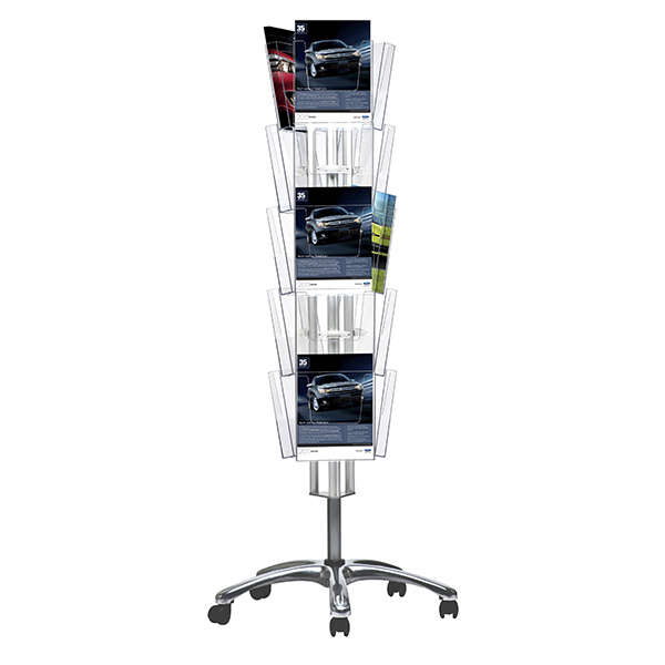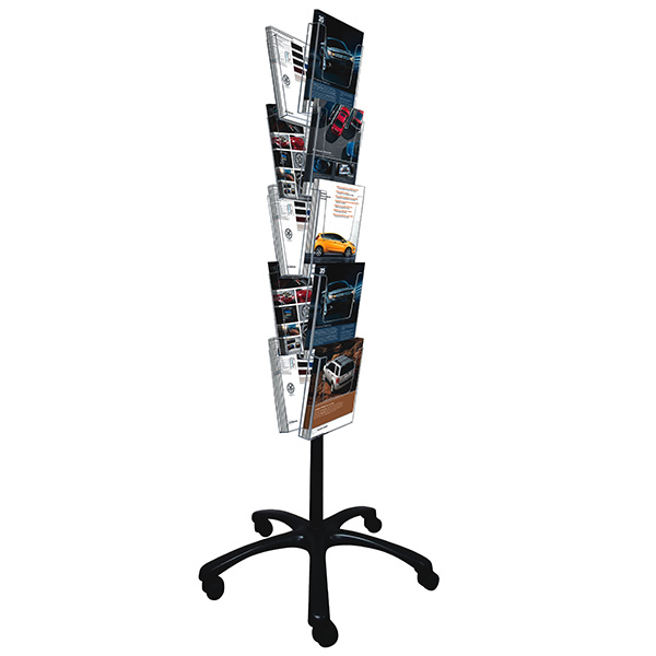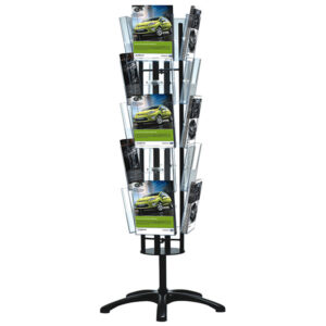 Dört taraflı zemin displaylarimiz ,Düz ve şık tabana monte edilmiş, merkezi sütun üzerinde dönebilir. Ana gövdesi siyah ve gümüş renklerinde 1600 mm boyutlarında mevcuttur. Raflar A4 boyutlarındadır. Multi Side Broşür Döner setleri düşük maliyetlerle birden fazla varyasyon sağlamak için geliştirilmiştir. İhtiyaçlarınıza göre herhangi bir sayıda broşür set için raf eklenebilir.