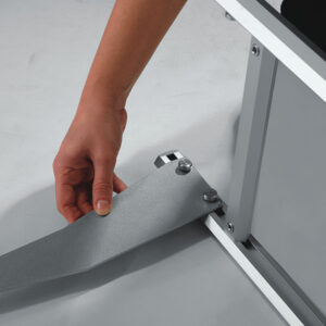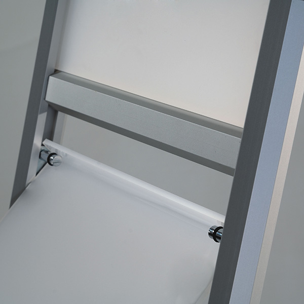 Buzlu pleksiden üretilen A4 raflar alüminyum gövdeye kolayca takılabilmektedir.