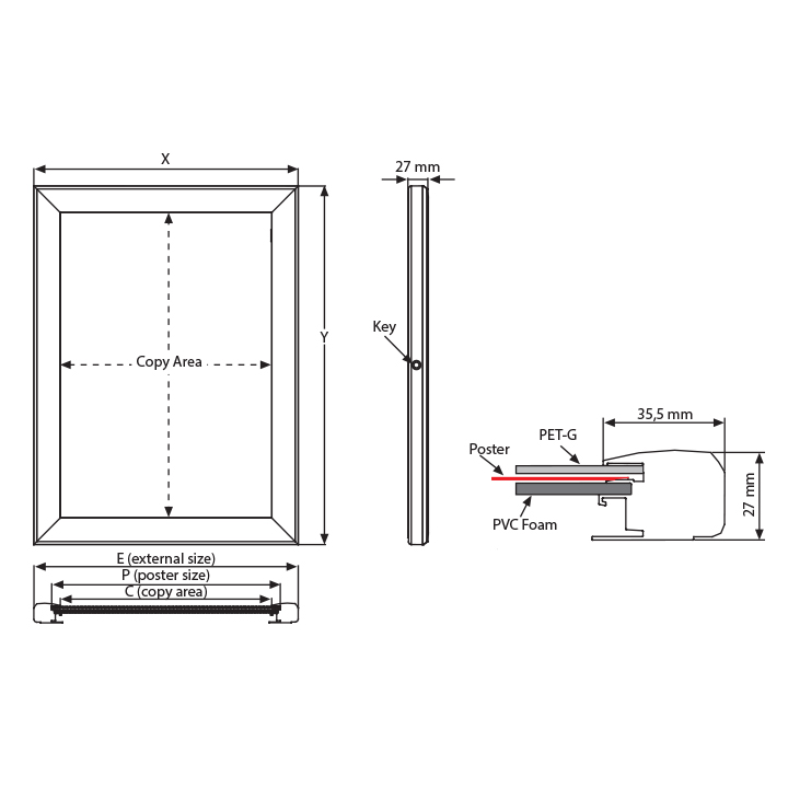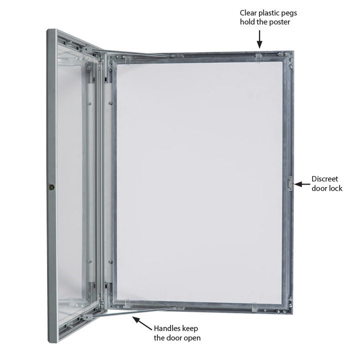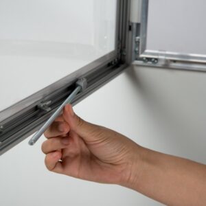 - Menteşeli kapak yapısı sayesinde afiş ve poster değişimi hızlı ve pratiktir.